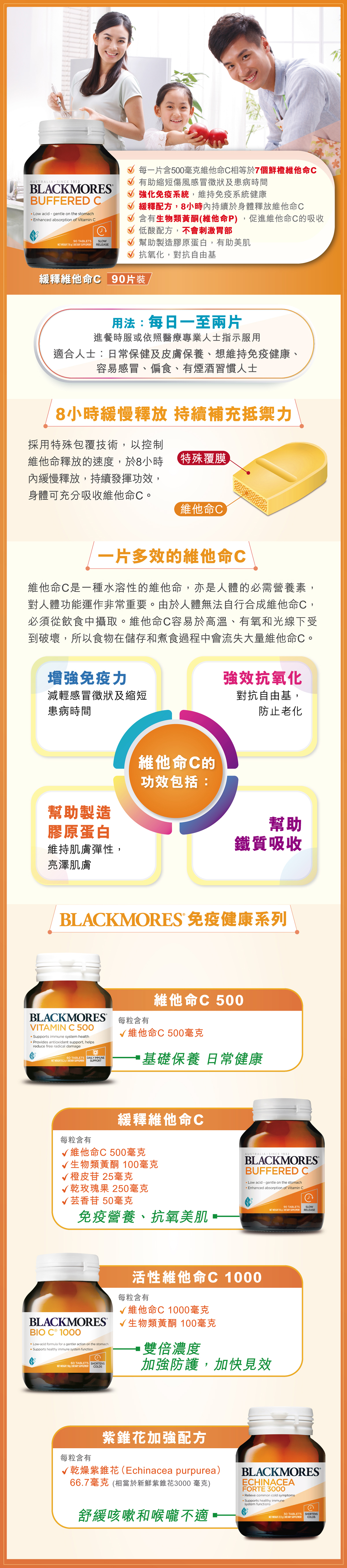 Blackmores Buffered C may help reduce the severity and duration of colds. It can assist with wound healing and helps maintain capillary health.